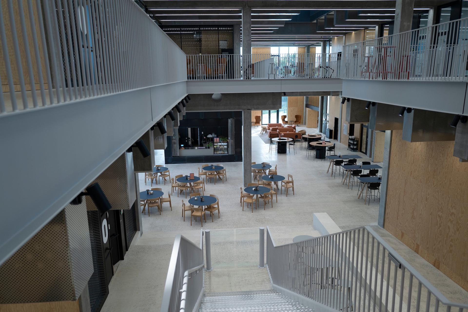 Atriumgaden er AAU INNOVATEs indre gade, der forbinder auditorie, café, reception, pitch area, udstillingstorv og prototypeværkstederne. På hele gaden er der placeret fleksible arbejdspladser og frie mødesteder. Du er velkommen til at komme forbi og se udstillingerne, tage en snak med os eller snuppe en kop kaffe i caféen. Du kan gå ind i AAU INNOVATE fra tre sider af bygningen.